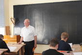Куратор ЛОК РК Петр Мусихин, приветствуя представителей учебных заведений, входящих в эту структуру, напомнил, что будущим инженерам в первую очередь необходимо освоить язык техники — начертательную геометрию. А в основе этой дисциплины, как бы подтверждая его слова, висящий в аудитории плакат гласил: королем технических наук является чертеж.