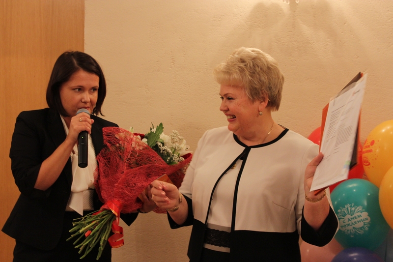 Сотрудники СЛИ вышли поздравлять своего директора большой командой. Учитывая, что в этот день в адрес юбиляра прозвучало много тёплых слов, они отошли от традиционного формата приветствия и рассказали, какой видят и знают своего руководителя все эти годы - умного, неординарного человека и яркую, красивую женщину.