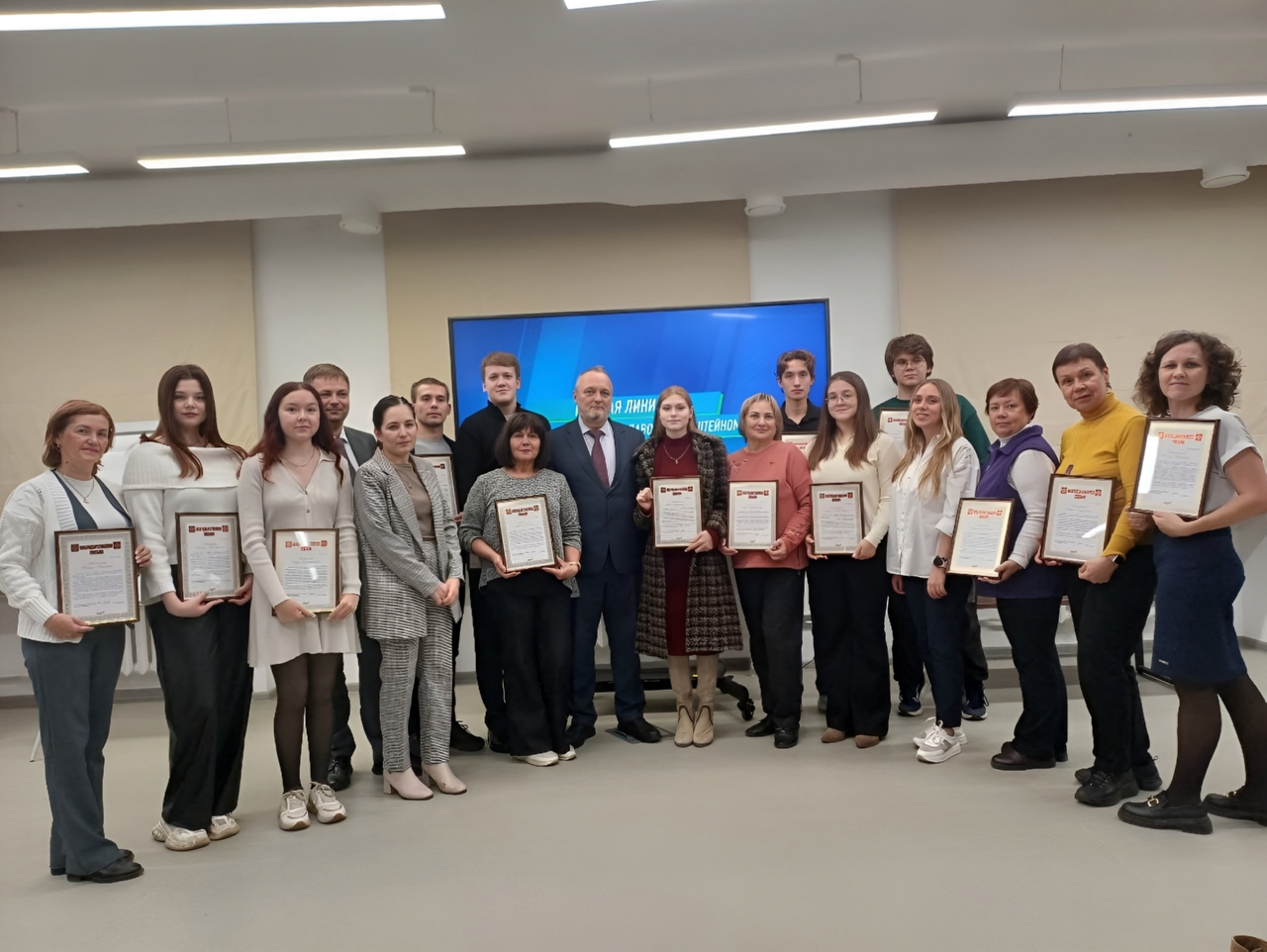 Волонтеры Сыктывкарского лесного института Зиятдинова Альфия, Лялькин Геннадий, Попов Алексей, Шевелев Артем, Эйвазова Анастасия, которые помогали в организации прямой линии Главы Республики Коми Ростислава Гольдштейна, получили заслуженные награды — официальные благодарности от руководства региона за безвозмездную помощь.