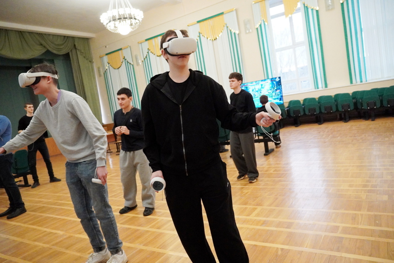 Но настоящим сердцем технологического бума стал актовый зал. Здесь, под ритмичные хиты, царила атмосфера праздника и инноваций. Дроны, взмывающие под потолок, не оставили неравнодушным никого. Ребята сражались в современных компьютерных играх, примеряли шлемы виртуальной реальности и погружались в цифровые миры, едва касаясь пола.