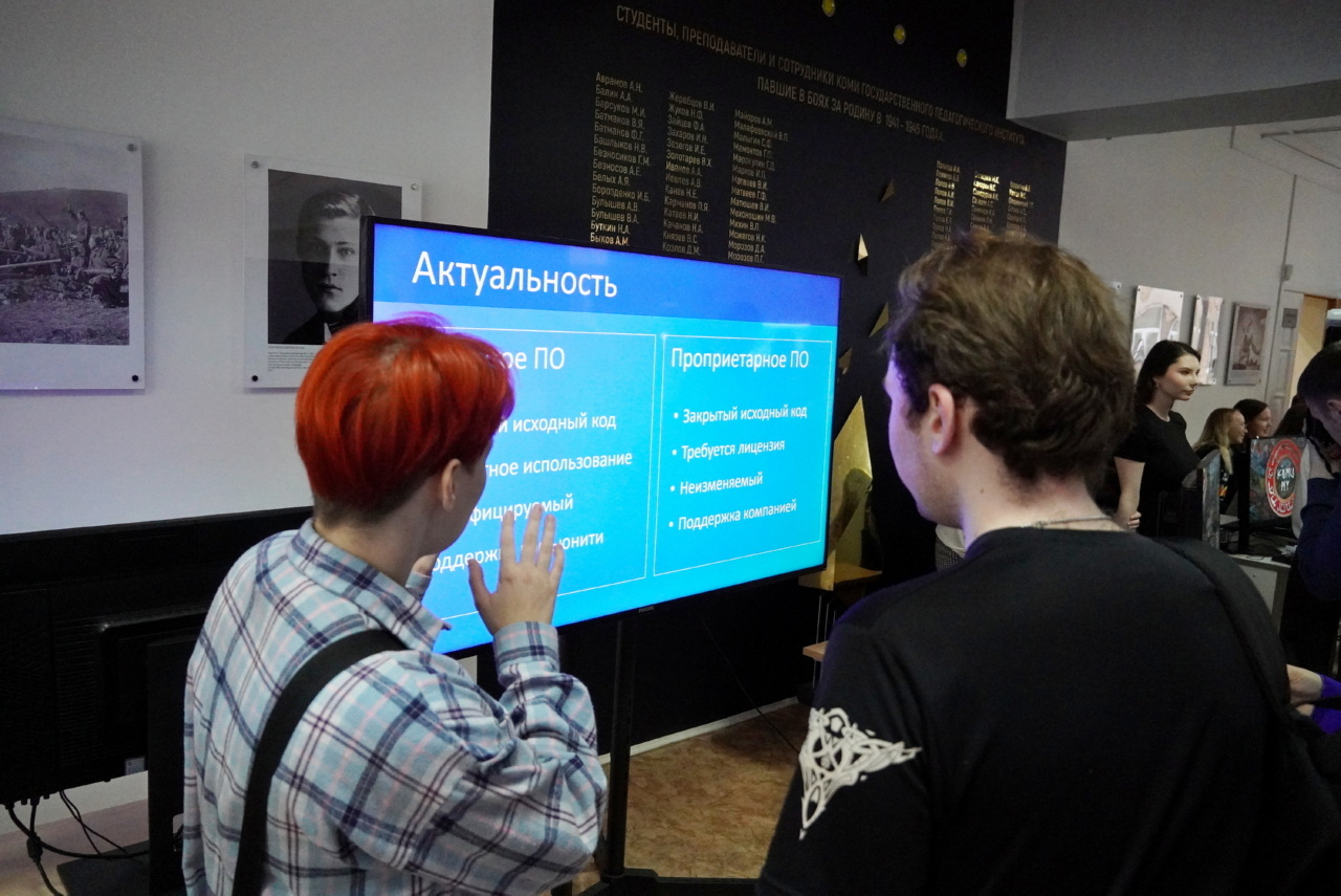 Также на представленной выставке во время мероприятия работали ребята Студенческого научного объединения СЛИ. Они показали и рассказали о своих наработках в области информационных технологий и экологии.
