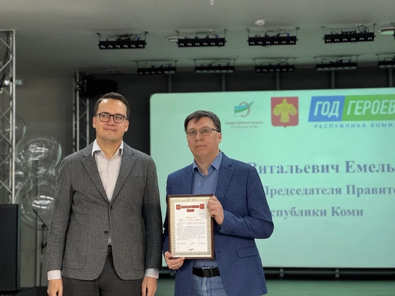Благодарственное письмо Главы Республики Коми Ростислава Эрнстовича Гольдштейна за активную гражданскую позицию и работу в качестве общественного наблюдателя в единый день голосования было вручено заместителю директора по цифровой трансформации Сыктывкарского лесного института, эксперту Общественной палаты Коми Николаю Бушманову.