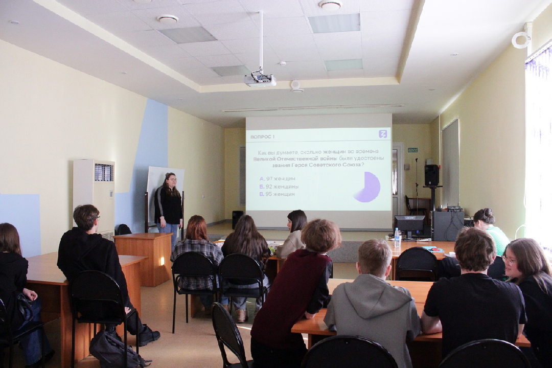 Ребята отвечали на вопросы из совершенно разных эпох: вспоминали, кто предложил учредить 8 Марта и какой цветок стал символом праздника; погрузились в историю Великой Отечественной войны — говорили о легендарных «Ночных ведьмах», женщинах-снайперах и медиках, а также о героических землячках из Коми АССР.