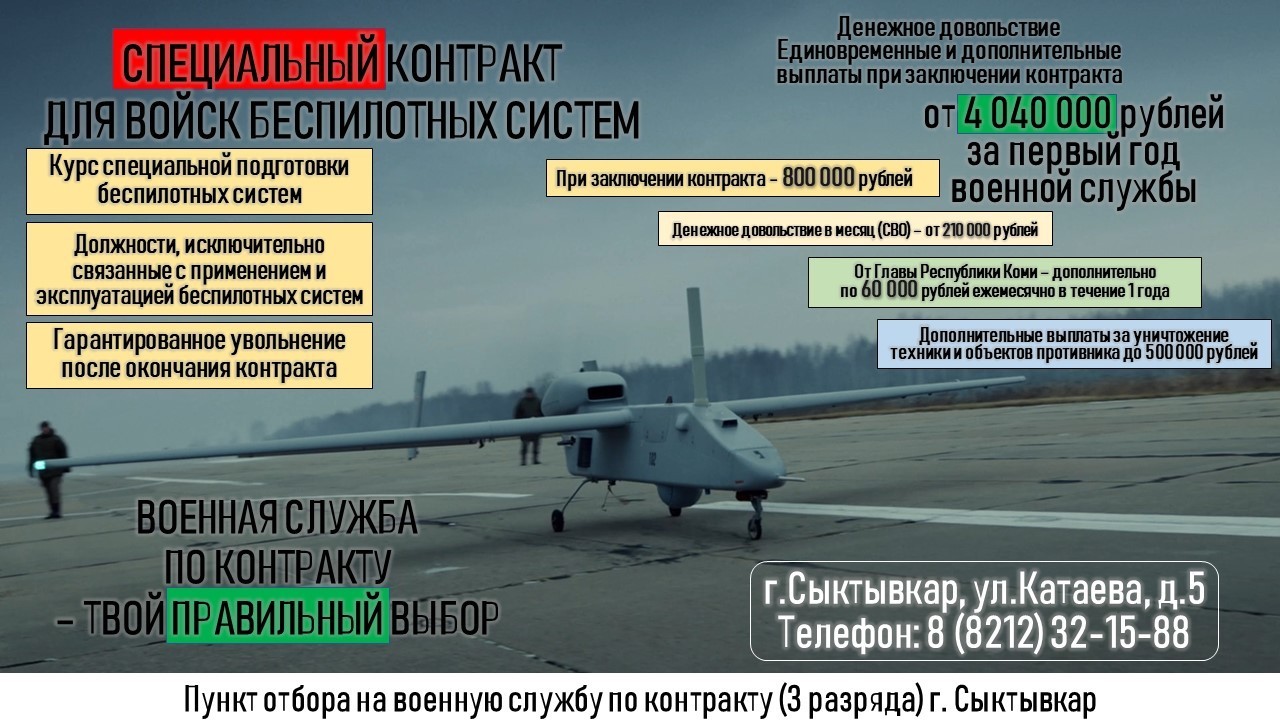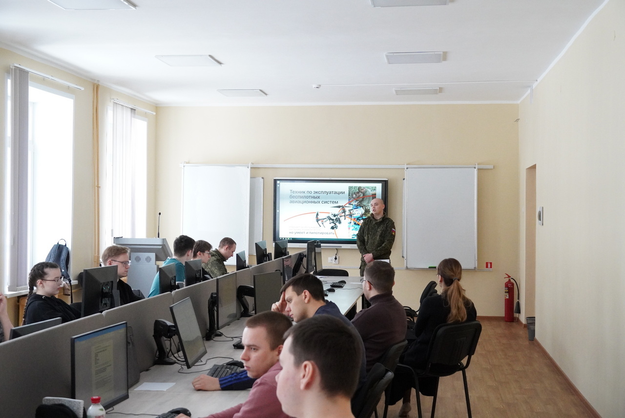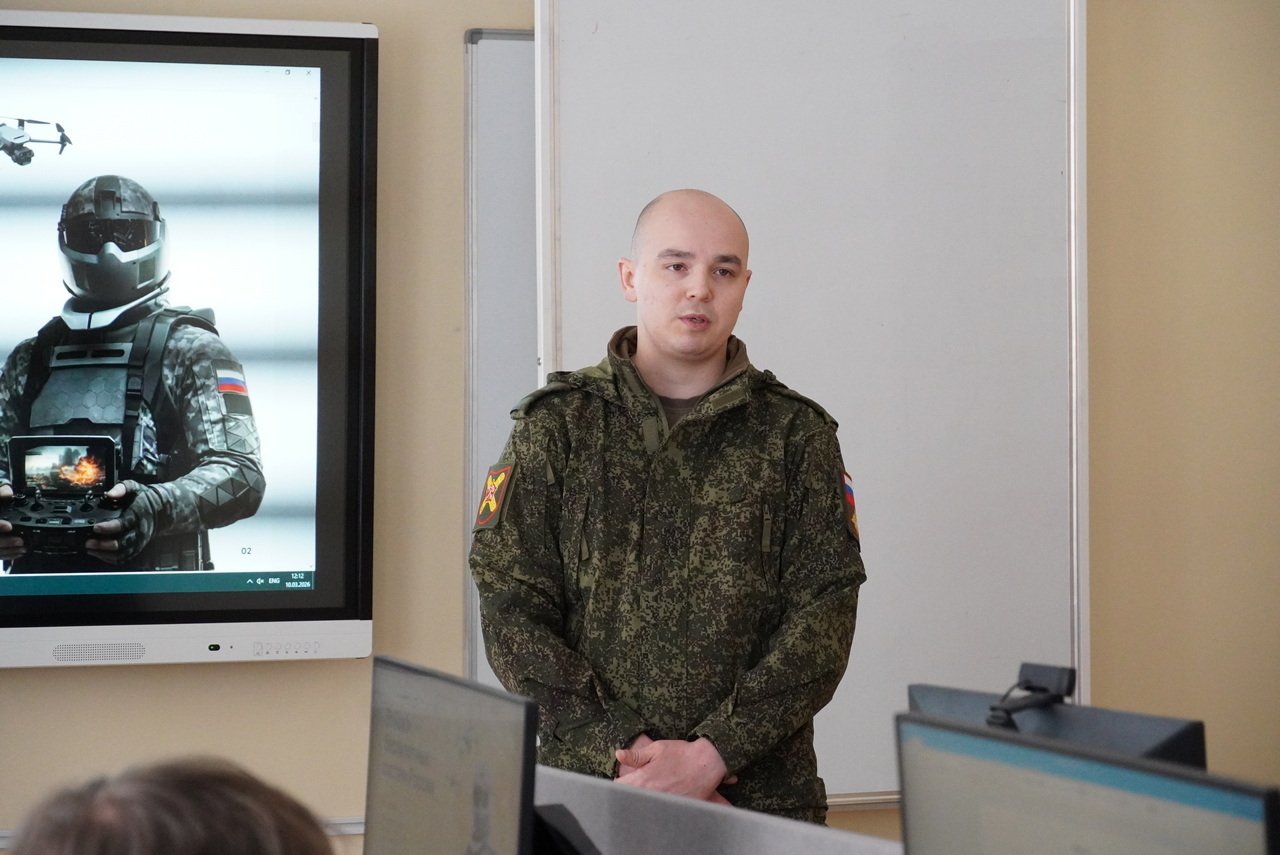 10 марта со студентами Лесного института встретились представители Сыктывкарского пункта отбора на службу по контракту. Разговор был не просто о службе, а о том, кто сегодня определяет лицо современной армии. Речь шла о возможностях службы по контракту в Войсках беспилотных систем — самом молодом и технологичном роде войск.