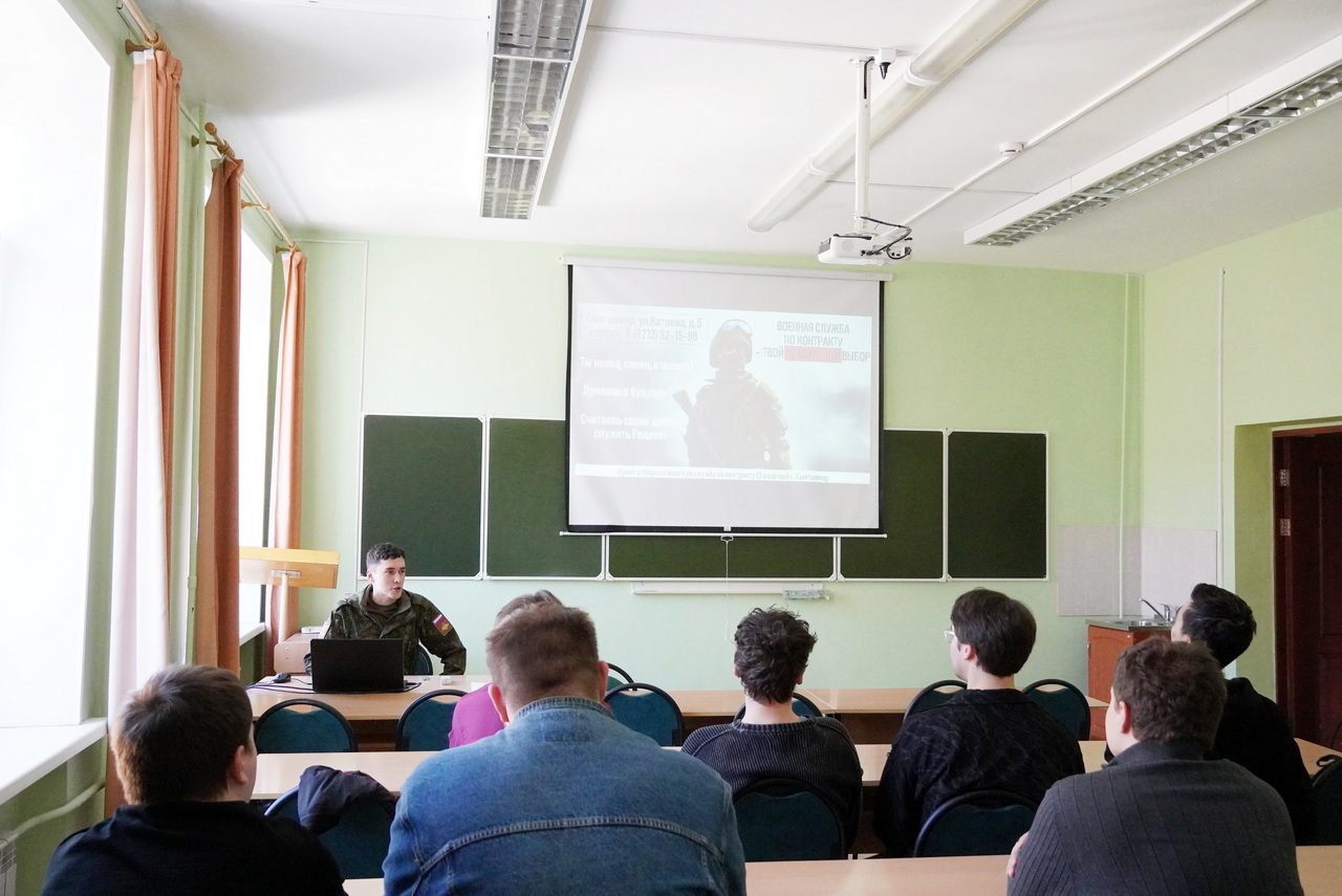 16 марта в стенах Сыктывкарского лесного института прошла встреча, которая заставила студентов взглянуть на военную службу под новым углом. Представители местного пункта отбора контрактников рассказали ребятам не просто об армейских буднях, а о том, кто сегодня формирует облик современной армии. Главной темой стала служба по контракту в Войсках беспилотных систем — самом новом и высокотехнологичном направлении.