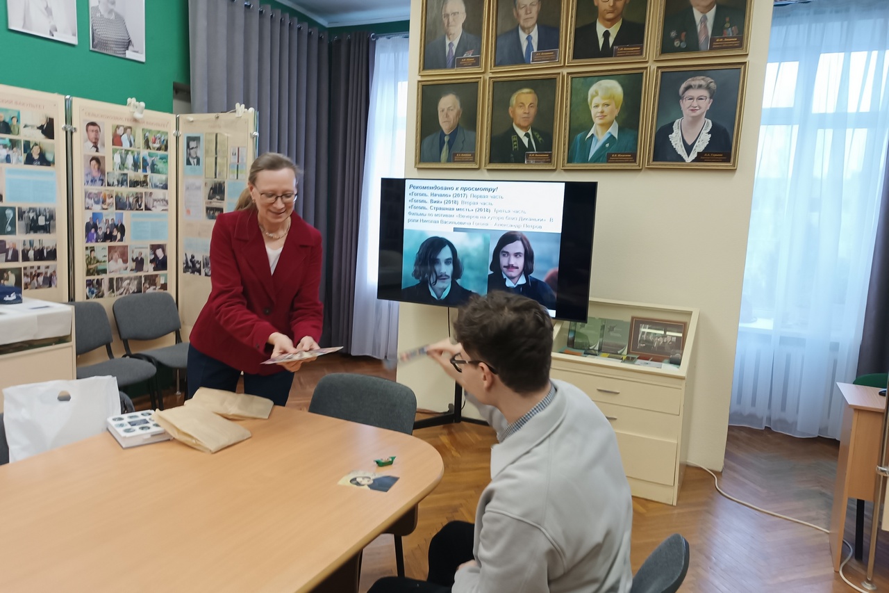 Разумеется, такой формат встречи подразумевал знакомство студентов с творчеством Н. В. Гоголя, благодаря чему получилось не только выстроить диалог с преподавателем на равных, но и «расколоть» многочисленные вопросы, которые приготовила для них наставник.
