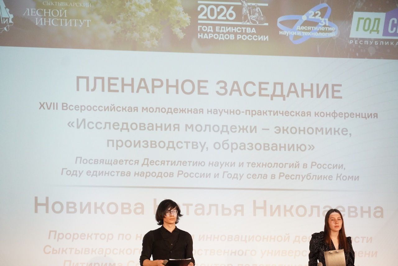 14 апреля в актовом зале Сыктывкарского лесного института состоялось торжественное открытие XVII Всероссийской молодежной научно-практической конференции «Исследование молодежи – экономике, производству, образованию». В этом году масштабное научное мероприятие объединило сразу три знаковые темы: Десятилетие науки и технологий в Российской Федерации, Год единства народов России и Год села в Республике Коми.