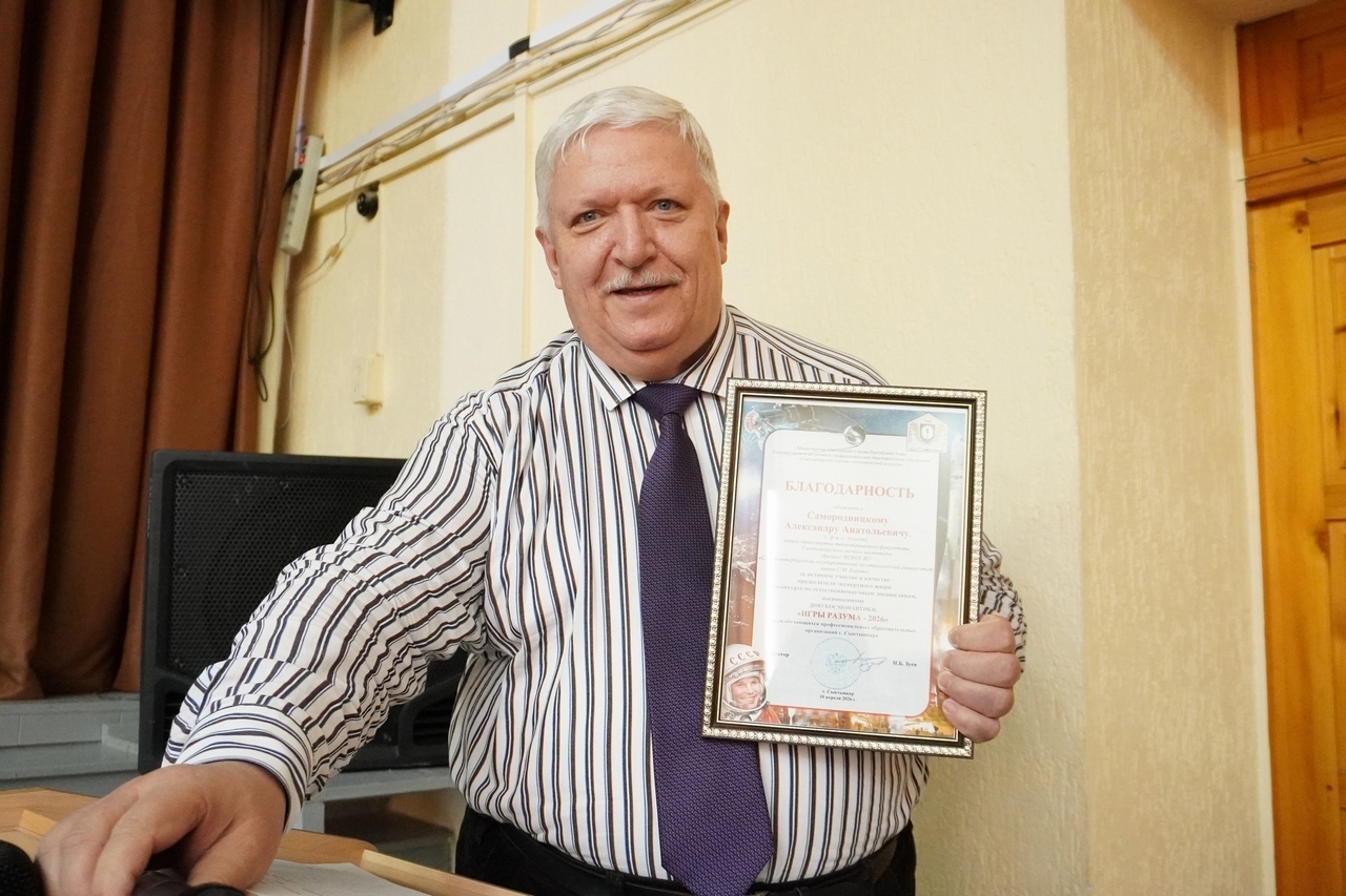 10 апреля на базе Сыктывкарского торгово-экономического колледжа состоялся ежегодный интеллектуальный марафон «Игры разума — 2026». По доброй традиции возглавить экспертное жюри вновь пригласили декана транспортно-технологического факультета СЛИ, кандидата физико-математических наук, доцента Александра Анатольевича Самородницкого.